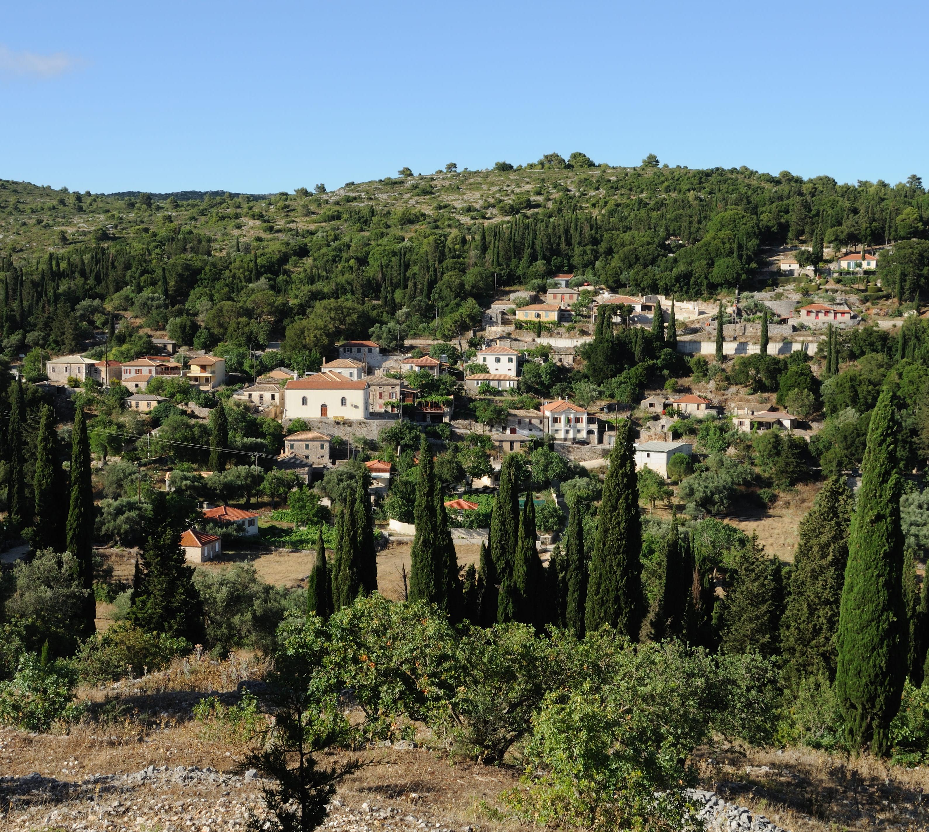 Das am Rand eines Hochtals gelegene, nur noch von wenigen alten Menschen bewohnte Dorf ist weder durch das Erdbeben von 1953 noch durch Neubauten in späterer Zeit verändert worden. Hier kann man deshalb noch erkennen, wie zakinthische Dörfer vor 50 und mehr Jahren aussahen.