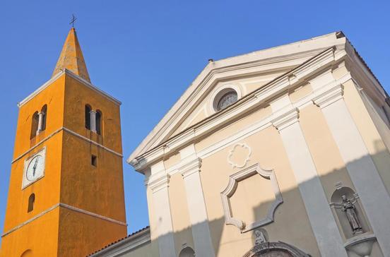 Gegenüber dem Hafen führt das Stubica-Tor durch die hier erhaltene Stadtmauer. Schmale Gassen mäandern um den Hauptplatz Trg Sv. Juraj mit der dem heiligen Georg geweihten, gotischen Kirche Sv. Juraj, die im Barock umgestaltet wurde. Cafés und Restaurants verleihen der hübschen "piazza" ein lebhaftes Gepräge. Vom Tympanon eines Hauses gegenüber der Kirche schaut das Halbrelief des "Mustacón", eines mit Turban und Schnurrbart bewehrten, grimmig guckenden Dunkelhäutigen, auf das Treiben - er soll das Haus vor Bösem schützen. Nebenan ist ein christlicher Schutzheiliger in Aktion: Sankt Georg ringt am einstigen Rathaus den Drachen nieder. Erhalten ist auch ein gotischer Wehrturm, der heute als Ausstellungsraum für Kunst dient.