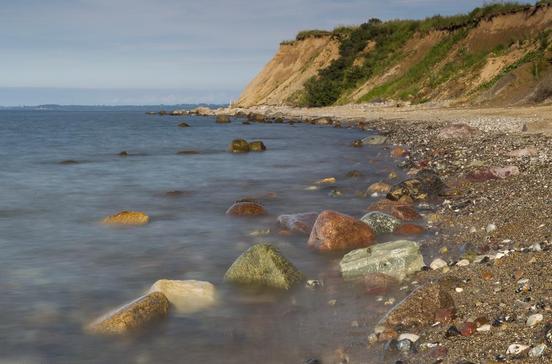 Am Ende der Strandpromenade beginnt ein Stück Steilküste, das zunehmend der Brandung zum Opfer fällt. Ein schöner Spaziergang führt bis Niendorf, für eine Kaffeepause bietet sich die Hermannshöhe.