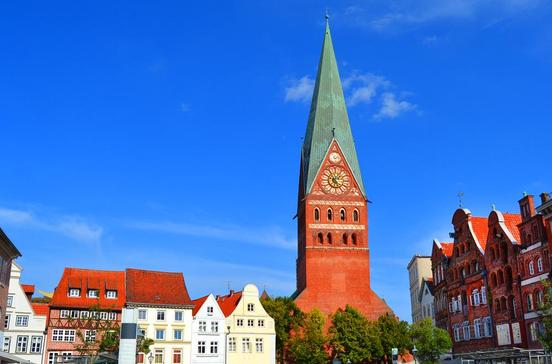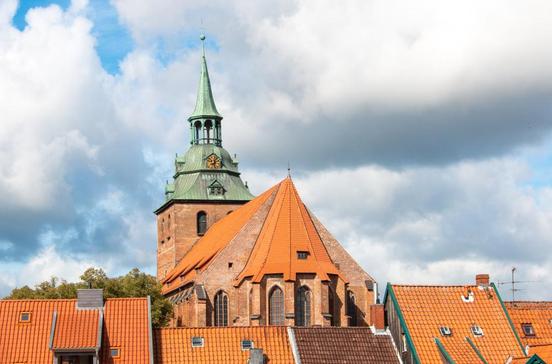 Die fünfschiffige Hallenkirche ist die älteste der drei erhaltenen Hauptkirchen Lüneburgs. Der dreischiffige Kernbau wurde bereits im frühen 14.Jh. geweiht, danach wurde aber noch gut anderthalb Jh.e lang am Gotteshaus mit seinen Seitenkapellen und Chören weitergearbeitet. Vom Turm bläst werktags der Turmbläser einen Choral herab.