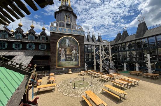 Das Glockenpalast Café und den Glockenpalast Biergarten im Innenhof