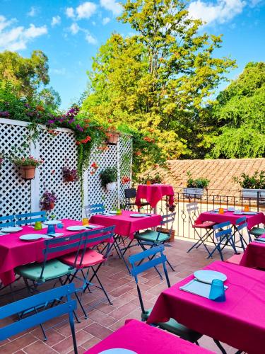 The recently renovated Maria Hotel includes a bar and a garden equipped with tables and chairs.