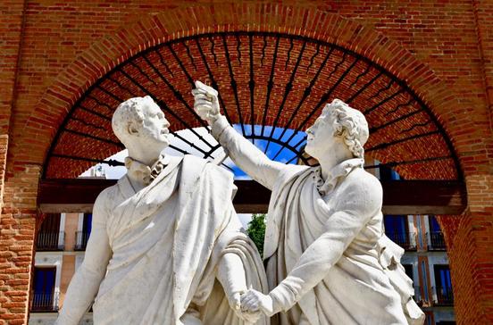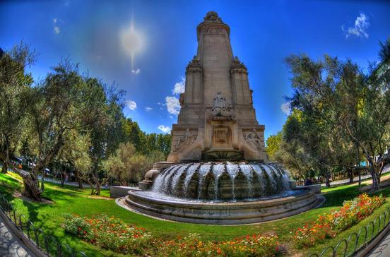 Das Denkmal des Cervantes ist nicht nur monumental, es will vor allem groß sein. Es befindet sich am Plaza de España, in der Nachbarschaft des Palastes von Madrid.