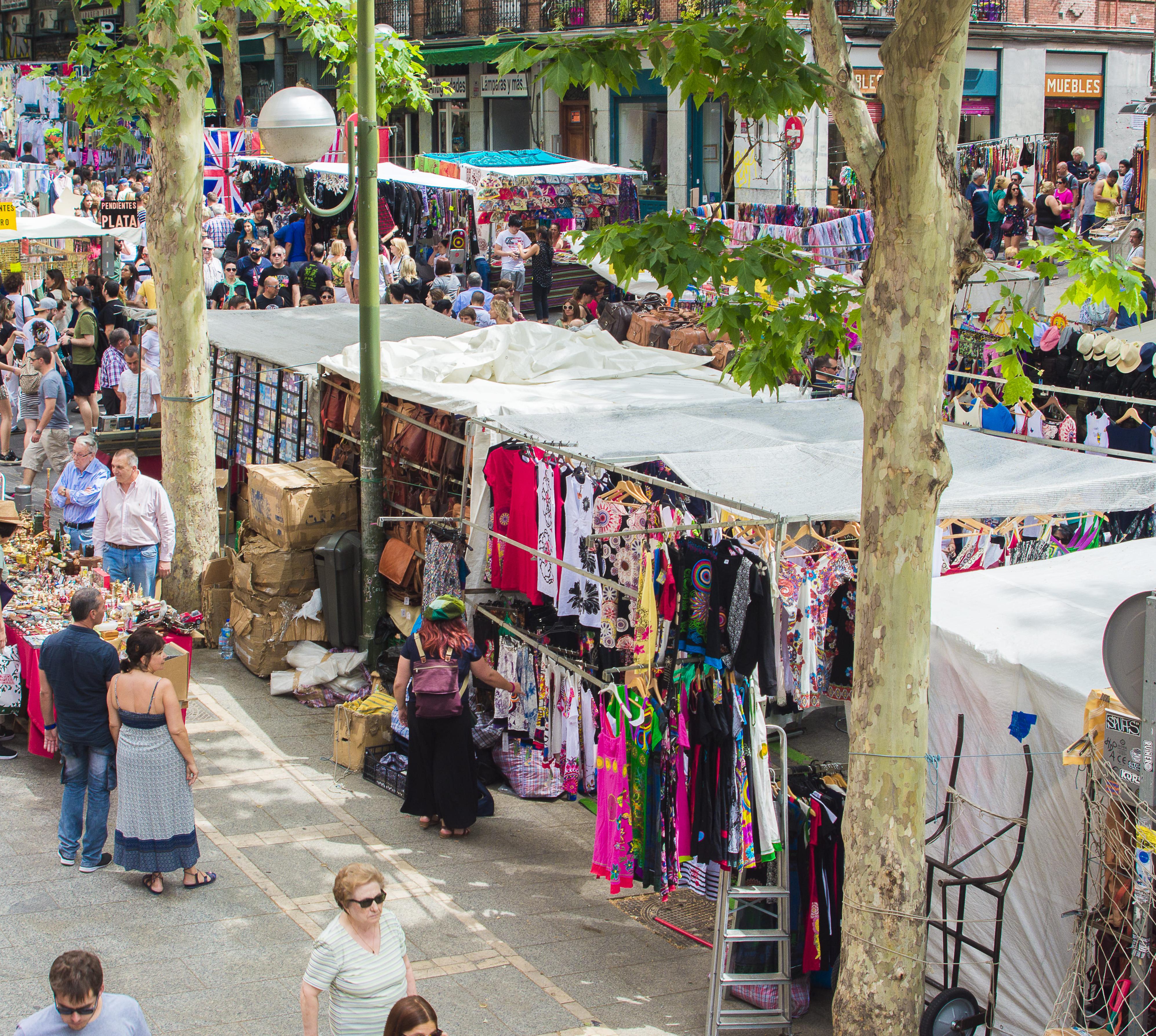 Ein tolles Menschengewimmel erfüllt am Sonntagvormittag die Straßen rund um die Plaza Cascorro. Der Besuch des Rastros gehört zur Sonntagsroutine vieler Madrider wie für andere der Kirchgang. An die 80.000 Menschen zwängen sich an den rund 1300 Ständen vorbei. Wer außergewöhnliche Entdeckungen machen will, sollte früh da sein. Ansonsten ist der Rastrobesuch eine gute Ausrede, um sich hinterher bei Wein und Tapas in einer der vielen Bars der Gegend zu treffen. Von der Plaza Cascorro geht es die Ribera de Curtidores hinunter und dann hinein in die Nebenstraßen. Feilschen ist erlaubt. Vorsicht vor Taschendieben!