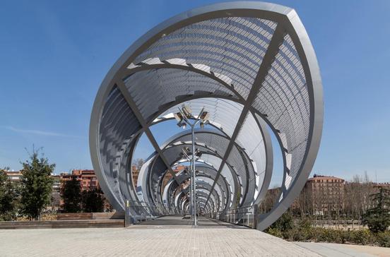 Hat Madrid eigentlich einen Fluss? Oh ja – den Manzanares! Aber der hat leider nie die Berühmtheit einer Seine oder einer Themse erlangt. In den 1970er Jahren, zu Zeiten der Franco Diktatur, baute man eine Schnellstraße an sein linkes und rechtes Ufer, als Teil des Autobahnrings um die Innenstadt. Für ein paar Jahrzehnte verschwand der Fluss aus der Erinnerung der Einheimischen. Nun ist er wieder da. Wo jahrzehntelang der Autoverkehr achtspurig floss oder stockte, macht sich seit 2012 ein Park breit und vor allem lang. Madrid Río, „Madrid Fluss“, heißt die 120 ha große Grünanlage. Sie ist das gelungene Ergebnis einer der weltweit gewaltigsten Stadtumbauten der Gegenwart. Es war eine Operation am offenen Herzen: Während über die Ringautobahn weiter der Verkehr pulsierte, gruben die Bagger unter den Fahrbahnen kilometerlange Tunnel. Jetzt fließt der Verkehr unterirdisch und oben ist der Traum von der Parklandschaft am Wasser wahr geworden. Am nördlichen Ende des Parks, auf Höhe des Puente del Rey, bietet sich ein Panorama, das bisher Autofahrern vorbehalten war: Hier erhebt sich, auf einer Anhöhe über dem Manzanares, das Madrid de los Austrias mit dem Königspalast, der Kathedrale und der Kirche San Francisco el Grande. Nichts lässt darauf schließen, was sich ein paar Meter tiefer abspielt: Genau hier haben die Bauingenieure ein ganzes Autobahnkreuz, das sich früher über den Fluss spannte, unter die Erde gelegt.Vom Puente del Rey aus begleitet Madrid Río den Manzanares auf rund 10 km Länge in Richtung Südosten. Der Fluss selbst ist ein Flüsschen geblieben, gerade mal 50 m breit und so flach, dass er nicht zum Ertrinken taugt (und für Schiffsverkehr schon gar nicht). Er plätschert leise und ein wenig trübe durch sein künstliches Bett aus Basalt, in das ihn die Stadtplaner schon in den 1940er Jahren gepfercht haben.Nach den ersten 500 m Fußweg ist es mit Ruhe und schönen Ausblicken vorbei: Jenseits des Puente de Segovia wird Madrid Río zum Volkspark und gehört den Menschen, die in den Hochhäusern auf der Südwestseite des Manzanares leben. Nach Jahrzehnten am Rand der Autobahn haben sie sich den Park so selbstverständlich zu eigen gemacht, als hätte es vor ihrer Haustür nie etwas anderes als Bäume, Spielplätze und Straßencafés gegeben.
