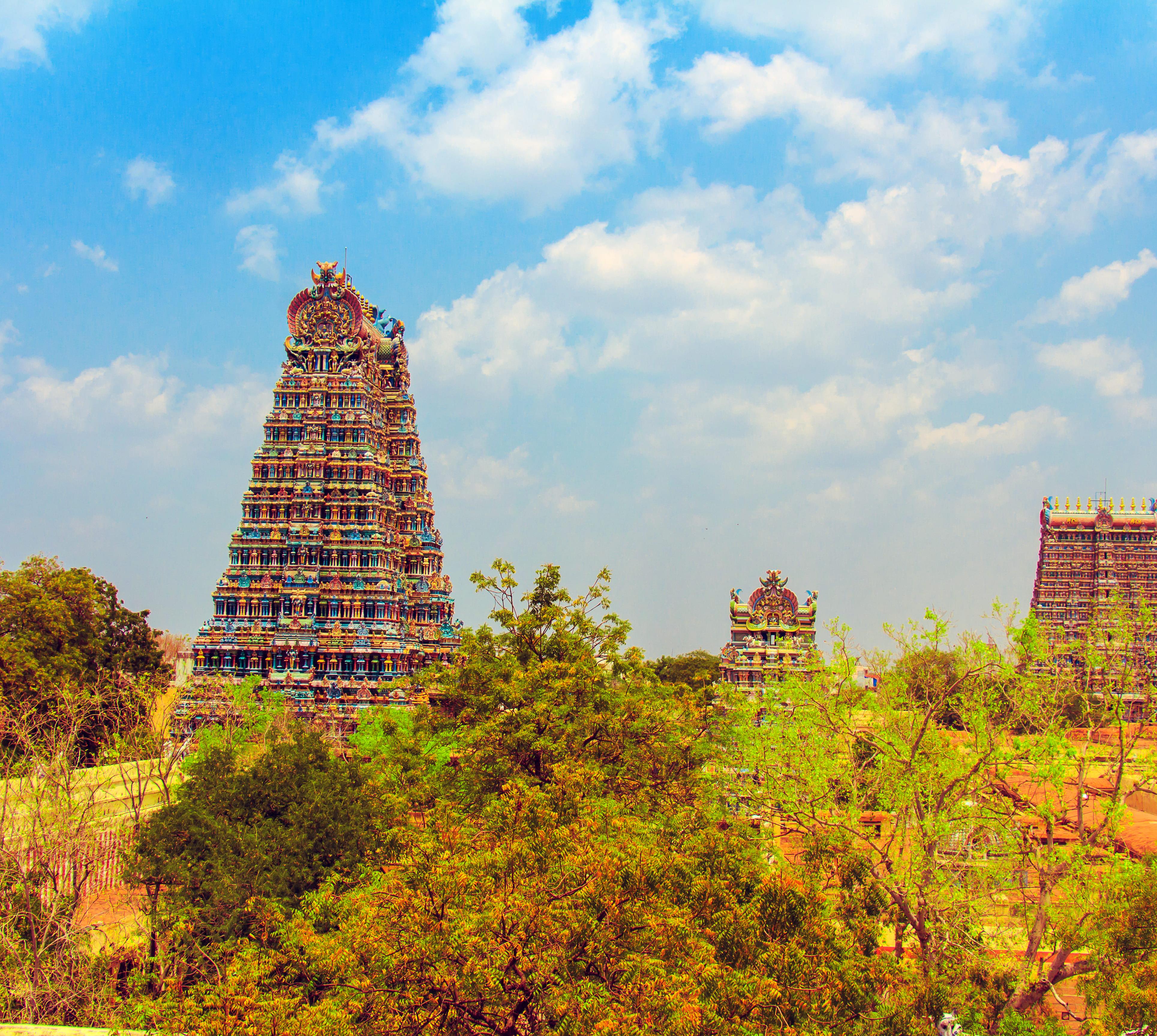 Die drittgrößte Stadt Tamil Nadus ist seit jeher ein wichtiges Textilzentrum. vor allem aber ist madurei ein jahrtausendealter Tempelort, der von Millionen von Pilgern zu Ehren der Göttin Meenakshi besucht wird. Mehrere Dynastien wie die Vijayanagara und Nayak haben hier ihre Spuren hinterlassen. Neben dem Shri-Meenakshi-Tempel, einem der beispielhaftesten Bauwerke drawidischer Architektur, sticht der Thirumalai-Nayakkar-Palast hervor. Die Altstadt Madurais ist wie eine Art Mandala angelegt mit konzentrischen Ringstraßen rund um den ShriMeenakshi-Tempel – angeblich wegen sakraler Kräfte.