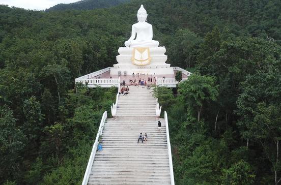 335 Stufen musst du schaffen, bevor du das herrliche Panorama am Tempel genießen darfst. Besonders schön ist die Aussicht im November und Dezember, wenn der Thale Mok, der „Nebelsee“ über dem Tal liegt.