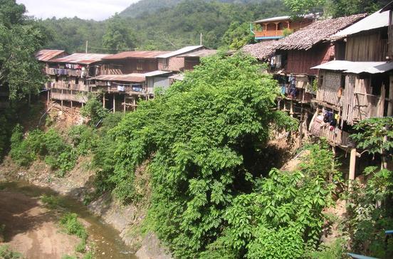 Mae Sam Laep liegt am Fluss Salween, der hier die Grenze zu Myanmar markiert. Das abenteuerliche Nest mit seinen in die Uferböschung gepfählten Holzhäusern lebt vom Handel und vom Schmuggel. Wenn sich auf der anderen Seite des Flusses burmesische Truppen und Rebellen bekriegen, verwandelt sich Mae Sam Laep eher in eine Geisterstadt.