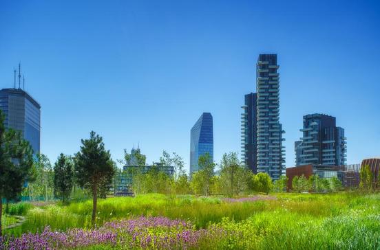 Die weithin sichtbare Hochhausenklave am Bahnhof Porta Garibaldi rückt mit ihren Fassaden aus Glas oder mit vertikalem Baumbewuchs an den jenseits der Bahngleise liegenden Stadtteil Isola heran.