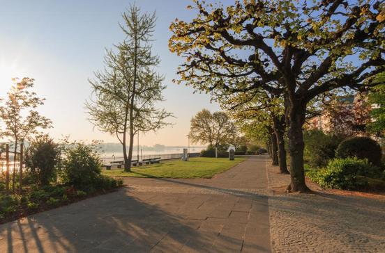 Entlang des Rheinufers stehen das Rathaus und die Rheingoldhalle, ferner der Eisenturm (um 1240) und der Holzturm (14.Jh.), beides Reste der mittelalterlichen Stadtmauer.