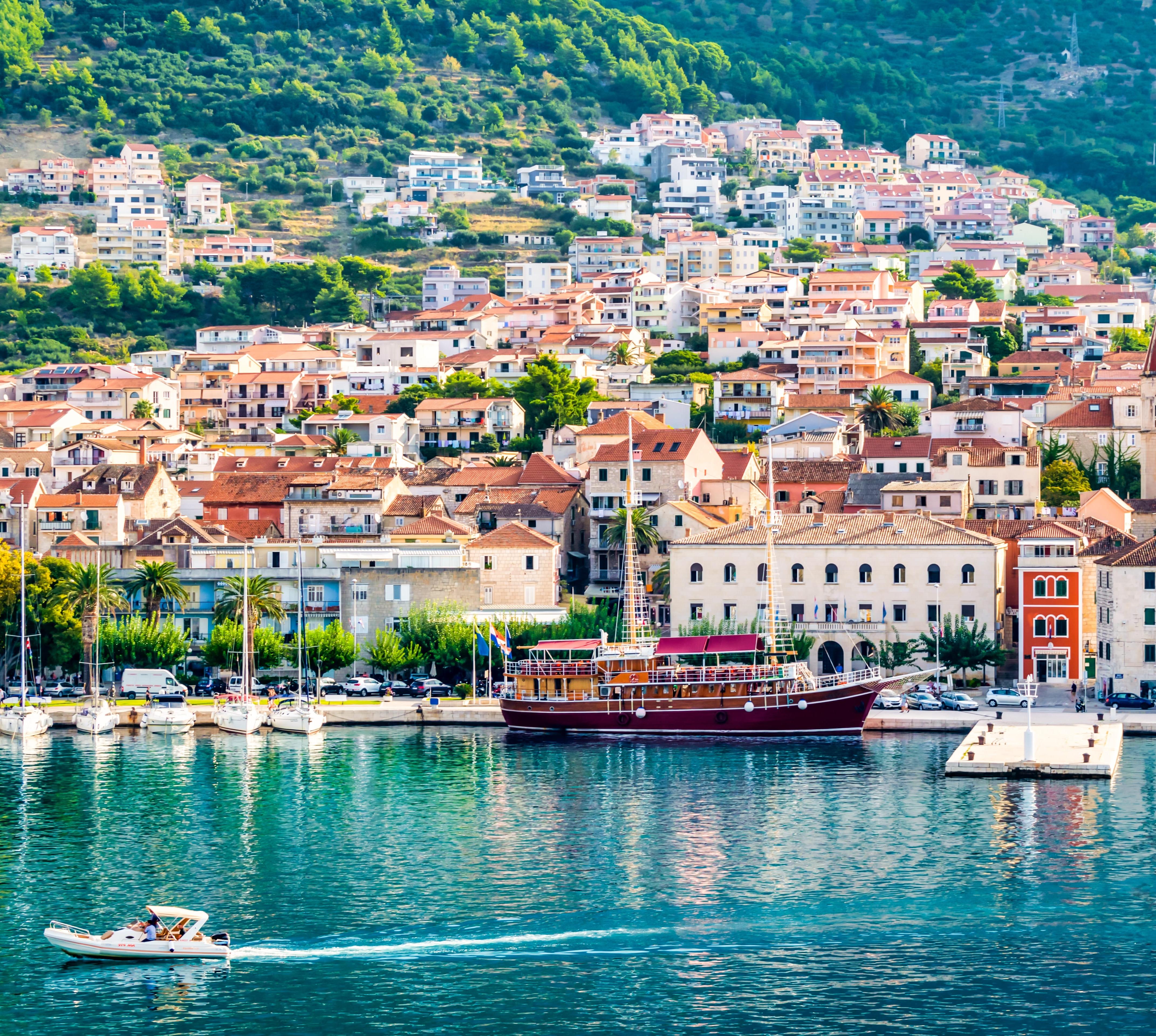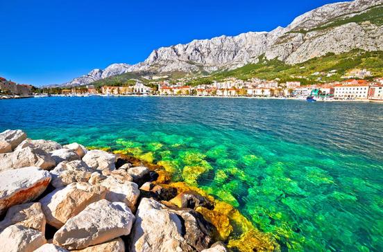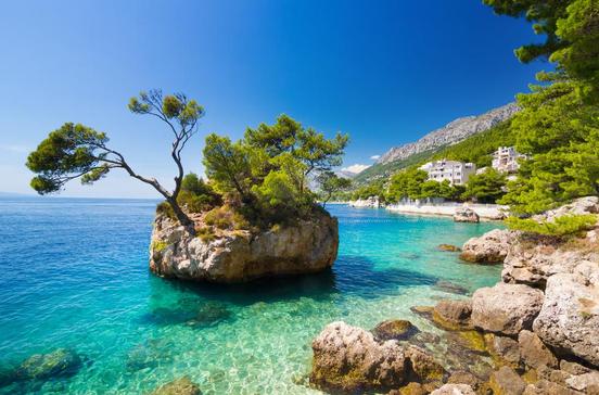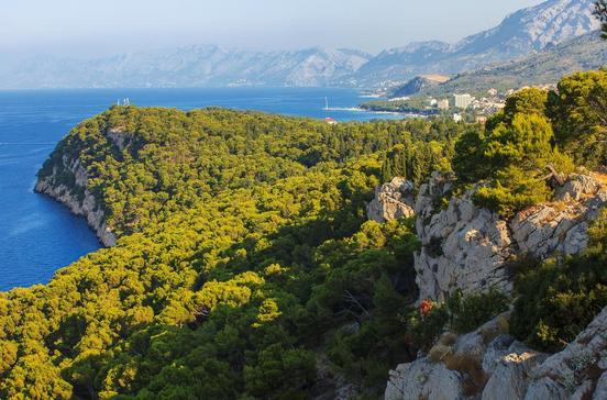 Dem Bergzug, der die eisigen Sturmstöße des Bora-Windes abhält, verdankt die Makarska-Riviera ihr mildes Klima. Die Inseln Brač, Hvar und Korčula bewahren die Küste vor dem Anbranden der See. Die sich über dem Meeresblau auftürmende, imposante Bergkulisse ist das Markenzeichen der beliebten Feriendestination.