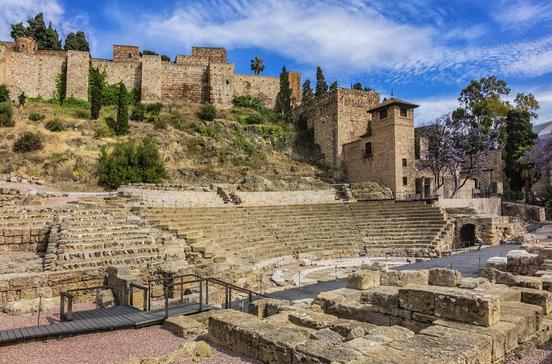 Beim Zugang zur Alcazaba liegen die Reste dieses römischen Theaters, das aus dem 1.Jh. datiert und bis ins 3.Jh. in Betrieb gewesen sein dürfte. Im Mittelalter diente das Gelände als Steinbruch der Mauren beim Bau der Alcazaba, erst Mitte des 20.Jhs. wurde das Theater bei Grabungsarbeiten für einen Park wiederentdeckt.