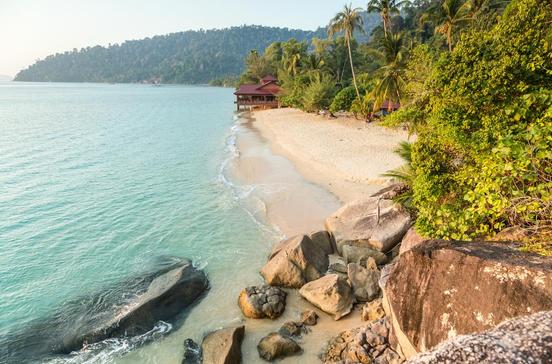 Stell dir Südsee-Trauminseln mit weißen Sandstränden, türkisblauem Wasser und von Dschungel bewachsenen Hügeln vor: Das sind die Perhentian-Inseln. Wer hierherkommt, will schnorcheln, tauchen und ausspannen. Das einzig Anstrengende ist hier die Wahl des richtigen Strandes, denn davon haben die beiden Inseln mehr als genug. Als besonders schön gilt der Long Beach auf der kleinen Insel (Perhentian Kecil), dort findest du auch ein Fischerdorf. Die große Insel (Perhentian Besar) mit dem Main Beach ist perfekt für Familien geeignet, denn hier ist es ruhiger. Drum herum gibt es einige unbewohnte Inseln, die du per Tagesausflug ansteuern kannst. Zwischen April und Oktober siehst du mit ein wenig Glück Schildkröten, die ihre Eier ablegen. Falls du aktiv beim Schutz dieser seltenen Tiere mitmachen willst, kannst du dich an einem der Freiwilligenprogramme auf der Insel beteiligen. Von Kota Bharu aus bringt dich ein Taxi zum Fähranleger in Kuala Besut. Dort legen Boote zur Insel ab. Auf den Perhentian-Inseln kommst du mit kleinen Taxibooten günstig von Strand zu Strand.