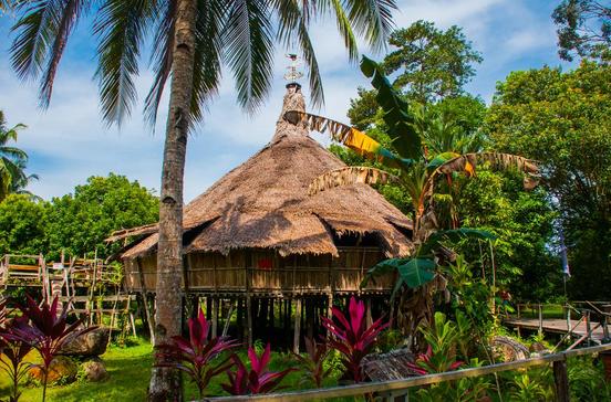 Landeinwärts liegt das Sarawak Cultural Village. In einem weitläufigen Park wurden von Bidayuh, Iban, Kenyah, Melanau, Penan, Malaien und Chinesen traditionelle Häuser errichtet, in denen sie ihre Kultur präsentieren. Nach einer Stärkung im Restaurant lohnt der Besuch der Folkloreshow. Ein Shuttlebus verkehrt ab dem The Hills Hotel in Kuching zum Sarawak Cultural Village und zurück. Naturfreunde dürften sich für eine Bootstour durch die Mangroven im Santubong-Delta interessieren: Mit ein wenig Glück triffst du nicht nur Krokodile, sondern auch die sehr seltenen Flussdelphine – und Glühwürmchen leuchten dir auf dem Heimweg. Spitzenmusiker aus aller Welt auf einer Bühne direkt am Regenwald, das erlebst du nur beim Rainforest World Music Festival, das ein Wochenende lang im Sarawak Cultural Village stattfindet. Hotels für diesen Zeitraum solltest du bereits Monate im Voraus buchen, der Andrang ist groß: 2019 waren es 23 000 Besucher.