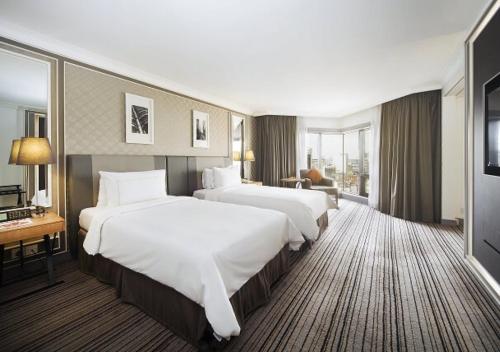 Modern rooms at Hilton Kuala Lumpur are thoughtfully designed with floor-to-ceiling windows that offer stunning views of the city or lake. Each room is equipped with a large flat-screen TV and an elegant marble bathroom with a pristine bathtub. Guests staying in Executive Rooms and Suites enjoy exclusive access to the Executive Lounge, where complimentary breakfast, afternoon tea, all-day refreshments, and evening cocktails are served in a sophisticated setting.