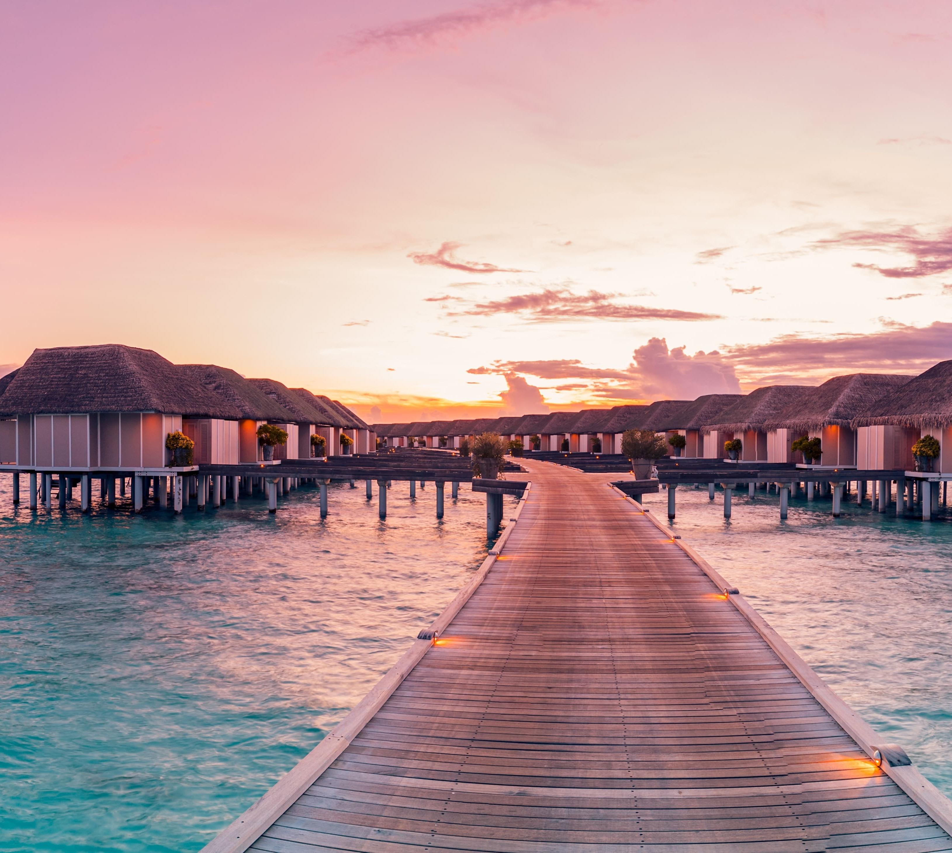 Hat man sich für eine der vielen Hotelinseln entschieden, ist die nächste Frage: Strandbungalow oder Wasserbungalow? Hier scheiden sich die Geister und es bleibt einfach Geschmacksache. Für viele ist das eigene kleine Häuschen direkt am Strand oder etwas zurückversetzt im Schutz der dichten Vegetation ein Muss – Terrassentür auf und direkt die Füße im Sand haben und vor dem Bungalow den eigenen kleinen Strandabschnitt. In der Regel gehören zu jedem Bungalow bzw. jeder Villa eigene private Liegen am Strand – was für ein Luxus! Fans der Wasserbungalows lieben es, direkt über dem Wasser zu wohnen, die Wellen gegen die Stelzen klatschen zu hören und auf der Terrasse ungestörte Privatsphäre zu genießen. Nachteil: Will man an den Strand, muss man doch wieder seine Tasche packen und/oder ein Handtuch schnappen, über den Steg marschieren und irgendwo auf der Insel (meist in der Nähe des Hauptpools) eine Liege oder ein schönes Plätzchen suchen. Viele splitten ihren Urlaub auf und gönnen sich am Ende ein paar Nächte in einer Wasservilla. Ein einzigartiges Wohnerlebnis ist das auf jeden Fall, direkt über der türkisfarbenen Lagune.