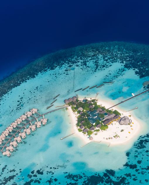 Meist macht der Flieger kurz vor der Landung eine lang gezogene Linkskurve und wenn du auf der richtigen Seite sitzt, hast du einen traumhaften Blick auf die zahlreichen Hotelinseln im Süd-Male‘-Atoll. Ein Ausblick, den du sicher nicht so schnell vergisst. Der internationale Flughafen auf der Insel Hulhule wirkt wie ein Flugzeugträger mitten im Meer und man fragt sich, wie eine so große Passagiermaschine auf der Landebahn rechtzeitig zum Stehen kommen soll. Doch sie kann und sobald die Tür aufgeht und du auf die Gangway heraustrittst, weißt du: Ich bin da! Die feuchtheiße Luft schlägt dir entgegen und raubt dir erst mal den Atem (die meisten der Malediven-Mehrfachtäter lieben genau diesen Moment sehr). Schon am Flughafen geht der Urlaub los, wenn Mitarbeiter der Resortinseln die Gäste in Empfang nehmen, ihnen das Gepäck abnehmen und zu ihrem Transfer mit dem Schnellboot, dem Wasserflugzeug oder einem Inlandsflug bringen. Du musst dich um nichts kümmern, sondern kannst dich zurücklehnen und dich auf deine Insel freuen.