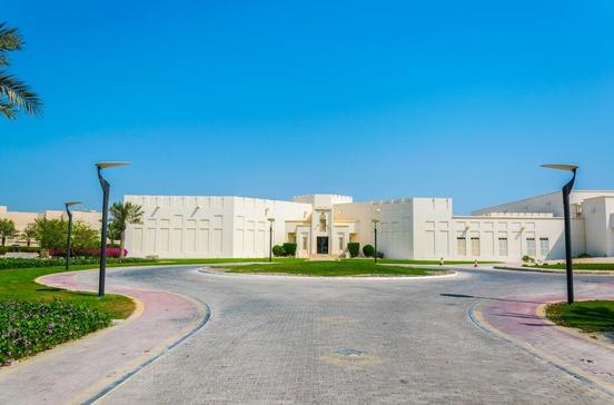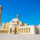 Die beiden 70 m hohen Minarette sind weithin zu sehen. Das grandiose, von Dattelpalmen umgebene Bauwerk liegt am Wasser und ist Teil eines 1988 errichteten weitläufigen islamischen Zentrums mit Bibliothek und Kongresshalle. Die größte Moschee des Landes bietet 7000 Gläubigen Platz, die prächtige Fiberglaskuppel von 25 m Durchmesser gilt als eine der größten der islamischen Welt. Kunstvolle Fenstergitter sorgen im Inneren für sanft gefiltertes Licht, Bogengänge prägen das gesamte Bauwerk. Auch Nicht-Muslime sind in der Moschee willkommen, Frauen erhalten eine abaya. Nach Einbruch der Dunkelheit wird die Moschee von unzähligen Lichtern illuminiert.