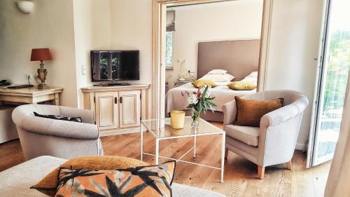 Alle Wohneinheiten in der Unterkunft Hotel mein inselglück sind versehen mit einem Sitzbereich, einem Flachbild-TV mit Satellitenkanälen, einem Safe und einem eigenen Badezimmer mit einer Dusche, kostenlosen Pflegeprodukten und einem Haartrockner. Alle Gästezimmer verfügen über einen Schreibtisch.