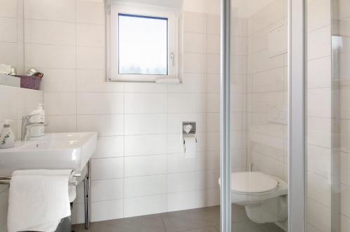 In der Unterkunft Ferienhotel Bodensee ist jedes Zimmer eingerichtet mit einem Kleiderschrank, einem Flachbild-TV, einem eigenen Badezimmer, Bettwäsche und Handtüchern.