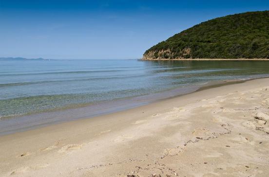 Die weit geschwungene Bucht mit feinem, weißem Sand und glasklarem Wasser gehört zu den schönsten Stränden der Toskana. Ausladende Schirmpinien spenden Schatten, Fischerboote dümpeln im kleinen Hafen und noch bezahlt man nur fürs Parken, nicht fürs Baden.