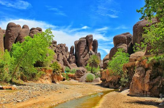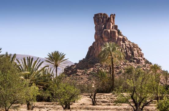 GeographicalDas kleine Dorf liegt 2 km südlich von Tafraoute am Fuß des Chapeau Napoléon. Dieser Felsen gleicht der Kopfbedeckung des französischen Feldherrn. Rund um das Dorf findest du herrliche Wandermöglichkeiten.