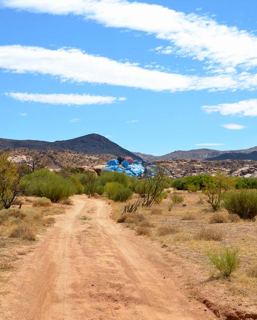 TouristenattraktionenSüdlich von Aguar Oudad liegen die "Blauen Steine", Kunstwerke, geschaffen aus Felsen und 20.000 kg Farbe. Diese wurde nach altägyptischen Rezepten von dem belgischen Künstler Jean Vérame hergestellt, der die bis zu 30 m hohen Felsen auch bemalte. Das Gesamtkunstwerk in den Farben Blau, Rot, Violett und Schwarz fügt sich harmonisch in die Landschaft ein, die von Granitfelsen umrahmt wird. Je nach Tageslicht verändern sich die Farben und geben ein phantastisches Schauspiel ab. Man kann in knapp eineinhalb Stunden von Tafraoute zu den Steinen wandern oder aber mit dem Auto den Hinweisschildern folgen.