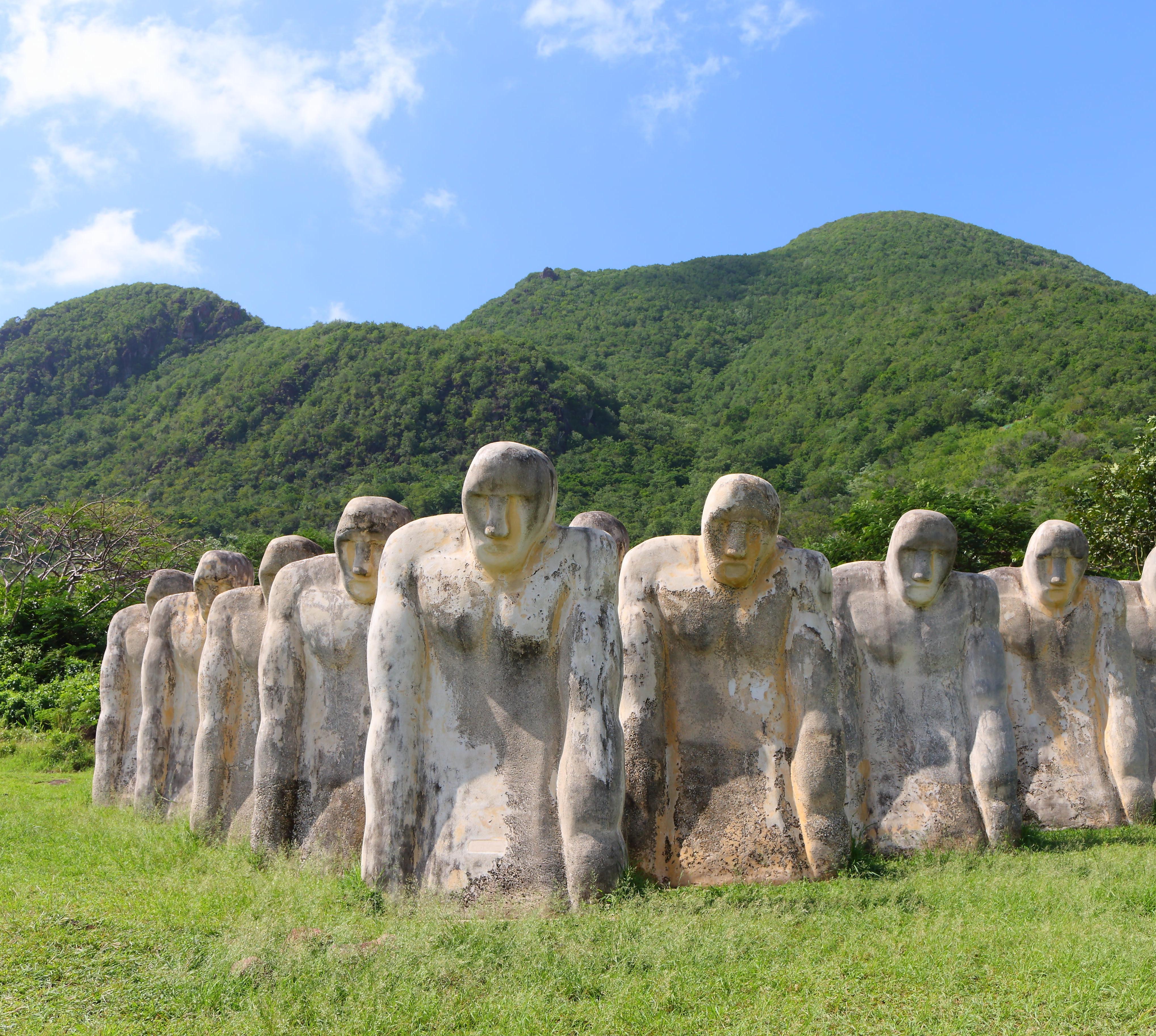 Wie die zu Stein erstarrten Geister der Sklaven, die hier einst vor der Küste angekettet in einem Sklavenschiff versanken, wirken die Figuren dieser Gedenstätte. Gegenüber ragt die Felsinsel Rocher du Diamant aus dem Meer, von der aus Anfang des 19.Jhs. britische Soldaten und Seeleute 18 Monate lang vorbeifahrende französische Schiffe bombardierten. Heute genießen Taucher dort die tolle Unterwasserwelt.
