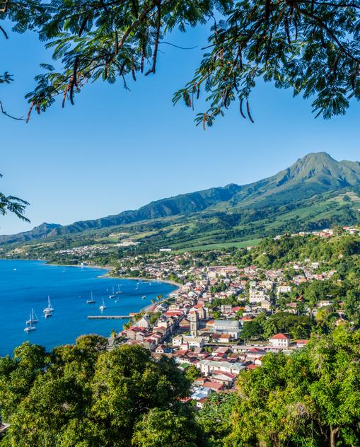 Martinique (1 128 km2, 400 000 Ew.) scheint Frankreich am nächsten. Europäisch und großstädisch wirkt zumindest die Hauptstadt Fort-de-France. Umso überwältigender ist die tropische Pracht im Hinterland der Insel, die die Ureinwohner Madidi nannten: ihr Regenwald, die Strände an der Südküste und ihre Ananas-, Bananen- und Zuckerrohrplantagen im Inselinnern. Auch Martinique hat eine wechselvolle Geschichte: 1762 besetzten die Engländer die Insel, um sie später im Tausch gegen Kanada, Senegal, St. Vincent und Tobago an Frankreich zurückzugeben.