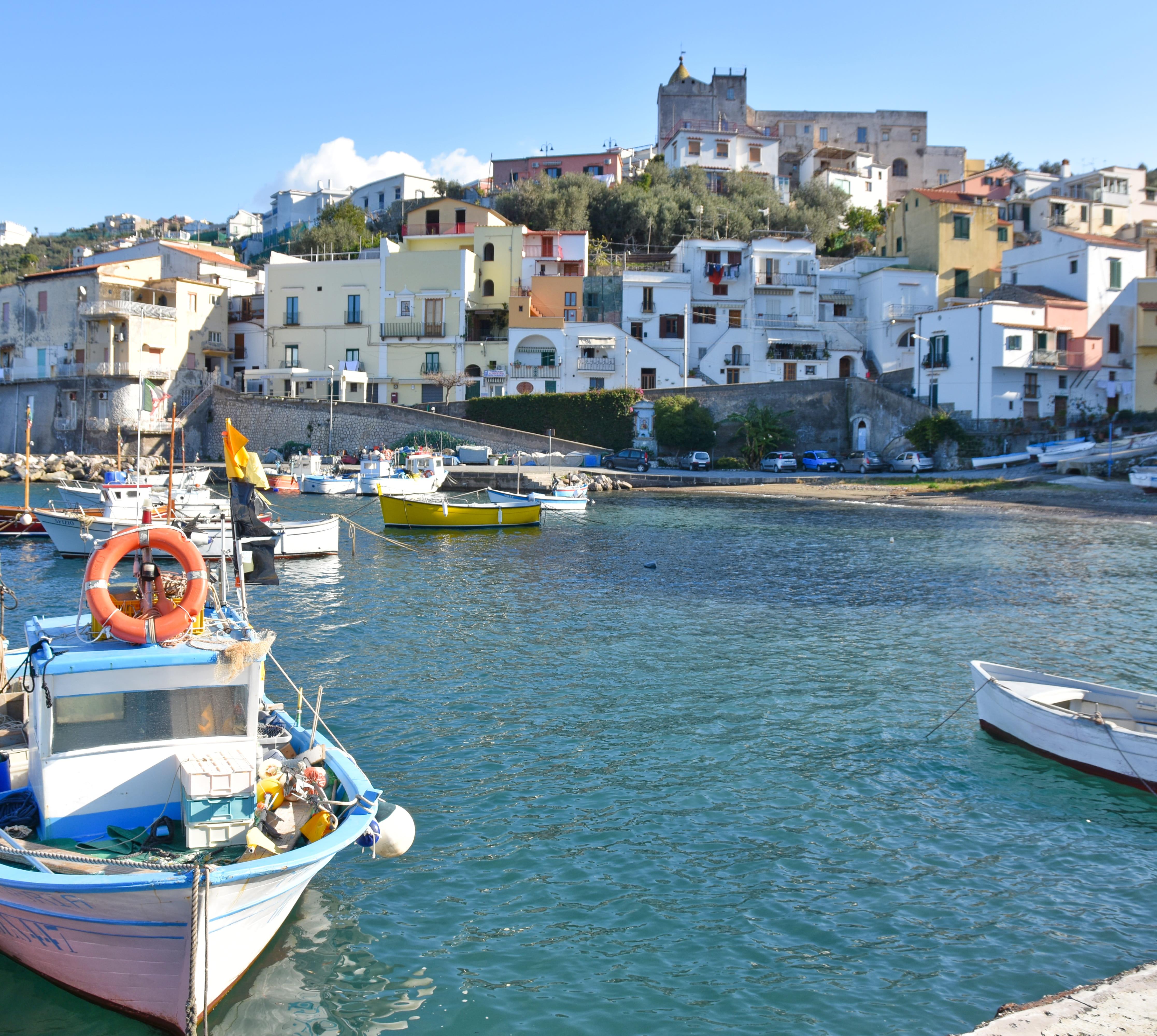 Im Anschluss an das quirlige Sorrent geht es ruhig und ländlich weiter in Richtung der Spitze der Halbinsel Punta Campanella, vorbei an Massa Lubrense mit dem kleinen, bezaubernden Fischerhafen Marina della Lobra sowie traumhaften Wanderstrecken. Unbedingt vorbeischauen solltest du hier beim Agriturismo La Lobra in einem der ältesten Zitronenhaine der Halbinsel. Natürlich bietet er exzellenten limoncello an und ebenso ein biologisch angebautes Zitronenöl. Dank der reichen Meeresfauna und -flora wurde die Punta Campanella zur Area Naturale Marina, zum Meeresschutzgebiet, erklärt. Von Termini wanderst du bei herrlichem Weitblick auf die Kapspitze, Capri und den gesamten Golf zum Kap mit seinen Felsformationen und dem Leuchtturm.