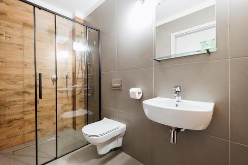 Die Apartments im Nowe Mikołajki verfügen über komplett ausgestattete Küchenzeilen mit einem Essbereich sowie bequeme Sitzbereiche. Ihr eigenes Bad ist mit einer Dusche oder einer Badewanne ausgestattet.
