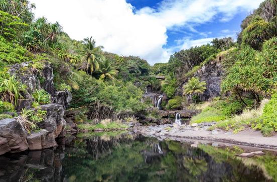 Sehenswert ist diese Schlucht mit den Oheo Pools, ein Naturschutzgebiet, das zum Haleakala National Park gehört. Mehrere Bäche strömen hier aus den Bergen und schaffen inmitten einer üppigen Dschungelvegetation malerische Wasserfälle und kleine Tümpel. Die Seven Sacred Pools, wie die leider oft recht überlaufenen Teiche auch genannt werden, sind eine Reihe stufenförmig zum Meer hin abfallender Becken, die sehr beliebt zum Baden sind.