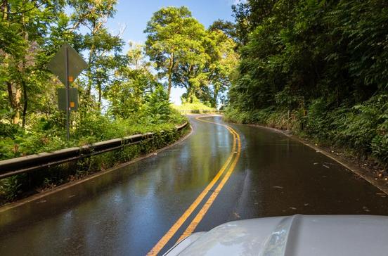 Über 54 Brücken führt die nur zweispurige Landstraße rund 80 km weit die von dichtem Urwald überwucherte Nordostküste Mauis entlang. Auf der kurvigen Panoramastrecke birgt jedes kleine Seitental Wasserfälle und stille Teiche und über weite Strecken kommt kein Haus in Sicht. Zu den schönsten Punkten entlang der Strecke gehört der Waianapanapa State Park, wo das Meer an einen pechschwarzen Strand brandet.