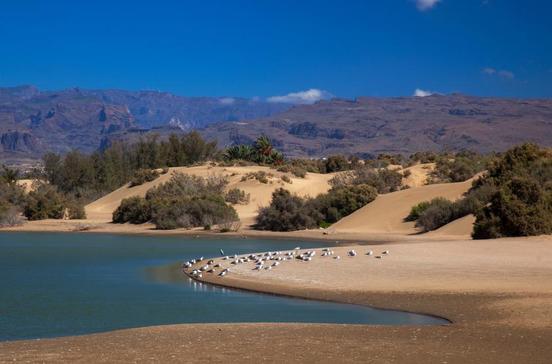 Der Charca de Maspalomas ist ein Brack- und Süßwassertümpel, in dem u.a. Reiher, Enten, Moorhühner und Regenpfeifer Station machen. Seit er geschützt ist, sind viele der durch den Bauboom vertriebenen Tiere zurückgekehrt und brüten im Schilf und in den Binsen am Ufer. Fische haben sich angesiedelt, Algen und Gräser zeigen an, dass das Wasser wieder sauberer geworden ist.