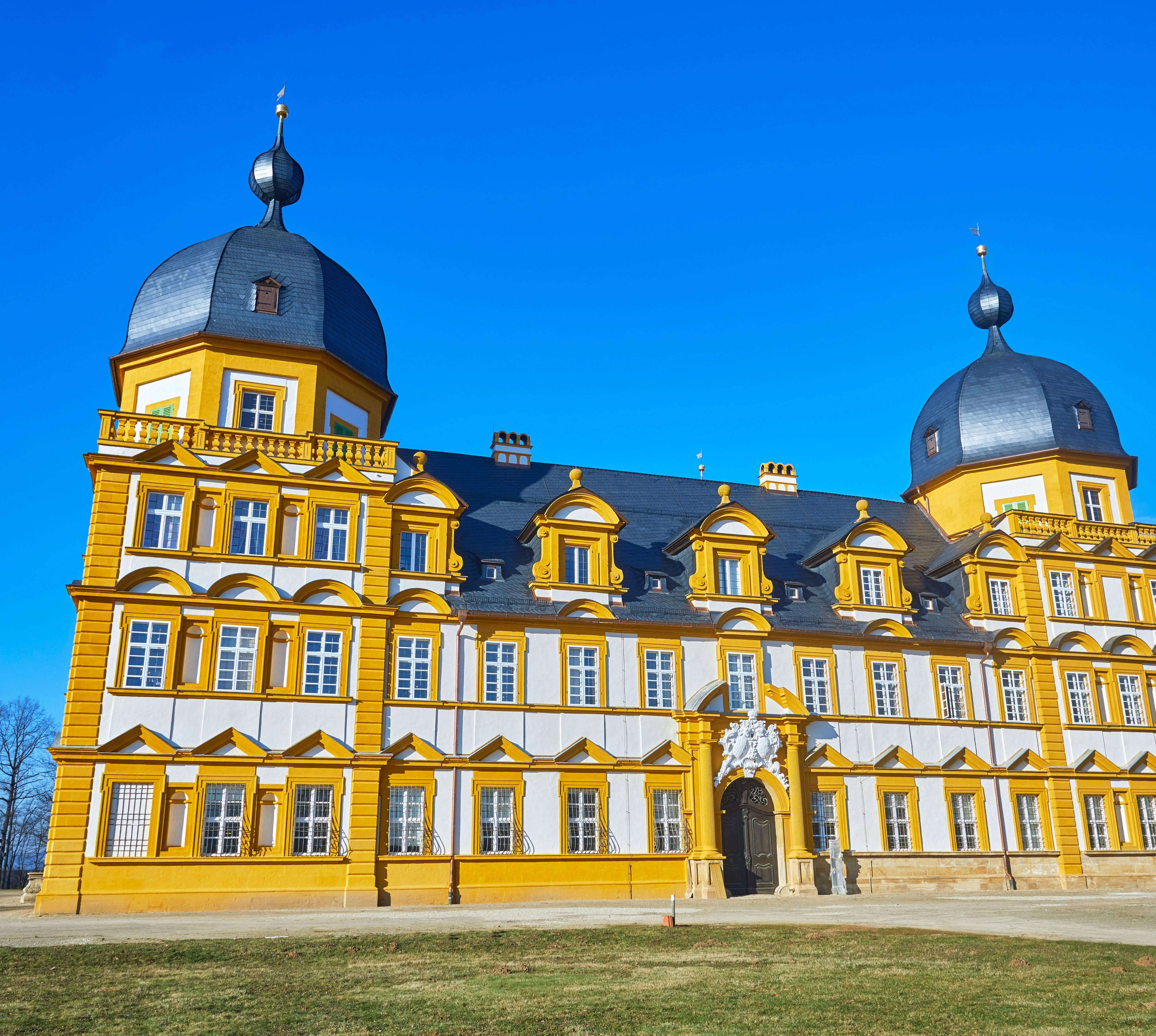 Die 1686 erbaute Sommerresidenz der Bamberger Fürstbischöfe zwischen Bamberg und Memmelsdorf (3 km) verwahrloste nach der Säkularisation und wurde in den letzten Jahrzehnten aufwendig saniert. Heute residiert hier das Bayerische Landesamt für Denkmalpflege. Neun restaurierte Schauräume, darunter der Weiße Saal, können besichtigt werden. Der weitläufige Rokokogarten mit der beeidruckenden Kaskade ist frei zugänglich. Die Wasserspiele sind von Mai bis Anfang Oktober täglich von 10 bis 17 Uhr zu jeder vollen Stunde in Betrieb