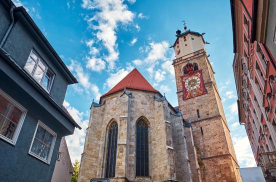 Ein eindrucksvolles Schnitzwerk stellt das Chorgestühl in dieser Kirche (1501-07) dar. Die schlichte, große Kirche steht ganz in der Tradition der schwäbischen Stadtkirchen - sie ist der Ausgangspunkt der Memminger Reformation.