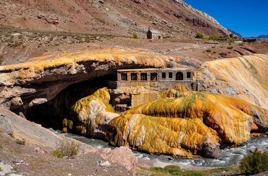 Beauty und WellnessWer zu tief ins Weinglas geschaut hat, erholt sich in dieser Thermallandschaft in den Bergen. Für Entspannung im mineralhaltigen Wasser kamen einst sogar die Inkas aus dem heutigen Peru hierher. Das angrenzende Hotel organisiert einen täglichen Shuttle aus Mendoza und offeriert Snacks, Mittagsbuffet und Massagen.
