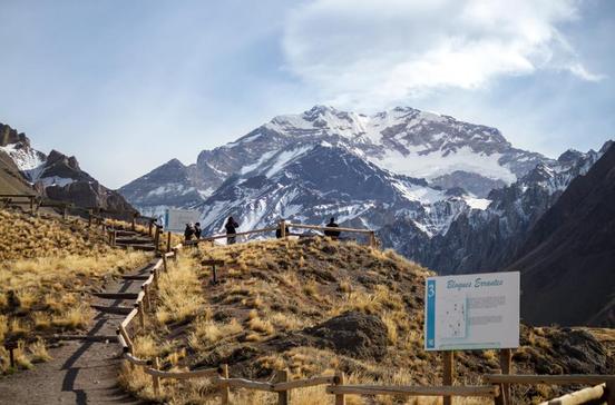 Der Traum aller Bergsteiger ist die Besteigung des 6962 m hohen Aconcaguas rund 200 km westlich von Mendoza. Der Gipfel befindet sich in einem Naturpark, zur Besteigung oder zum Trekking an seinen Flanken muss man sich eine gebührenpflichtige Genehmigung besorgen. Für den Aufstieg, der nur von Mitte November bis Ende Februar möglich ist, benötigt man eine gute körperliche Verfassung, genug Zeit (wenigstens zehn Tage) und einen zuverlässigen Bergführer. Von Puente del Inca aus geht es mit dem Maultier zur Plaza de Mulas (4260 m). Steile Pfade führen zur Basishütte. Hier sollte man sich einige Tage lang zunächst an die Höhe gewöhnen. Verlässliche Informationen zum Bergwandern bekommst du in Guaymallén beim Club Andinista organisiert sowohl die Besteigung des Aconcaguas als auch Führungen zu Fuß oder zu Pferd durch die Berge.