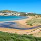 Die phantastische Bucht ist so tief eingeschnitten in die Nordküste, dass hier gefahrloses Baden möglich ist. Hinterm Ortsausgang von Fornells zweigt auf Höhe der Salinen Ses Salines rechts die Zufahrtsstraße ab. Am Osthang der Bucht stapelt sich die weiße Feriensiedlung Platges de Fornells den Hang hinauf, die Westseite ist unbebaut – vom breiten Sandstrand schaust du auf eine urwüchsige Szenerie niedriger Klippen. In klaren Nächten ist auch das Firmament spektakulär! Toll für einen Sundowner ist der Beachclub Isabella an der Ostseite der Bucht. Manchmal gibt es hier Livemusik, die zu Menorca passt: „Eher lassen wir eine Violinistin Klassik spielen oder einen Saxofonisten ein Stück Jazz als Techno ...“, so Besitzer Xavier.