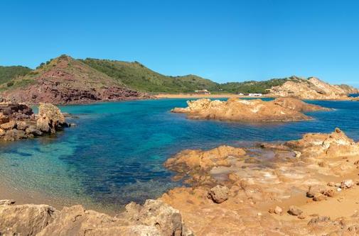 Klares, türkisfarbenes Wasser, eingefasst in einen Ring aus grauem Kalkstein, im Hintergrund der Sandstreifen und ein kleines Feuchtbiotop, in dem früher Schildkröten lebten: Menorcas Vision vom Paradies. Zurzeit versorgt nur eine in den Pinien versteckte Bar mit schlichten (und überteuerten) Gerichten die Strandgäste. In den Uferfelsen findet man einige prähistorische Grotten. Nach Westen zweigt ein Fußpfad ab zur Cala Macarelleta, wohin sich Nudisten zurückziehen. Die Traumbucht erlebst du am besten vom Wasser aus, z. B. im Rahmen einer Bootstour ab Ciutadella. Oder du nimmst ab Ciutadella den Bus, der helfen soll, die Autokolonnen abzubauen. Für 8,40 Euro kommst du entspannt hin und zurück und hast einen tollen Tag am Strand.