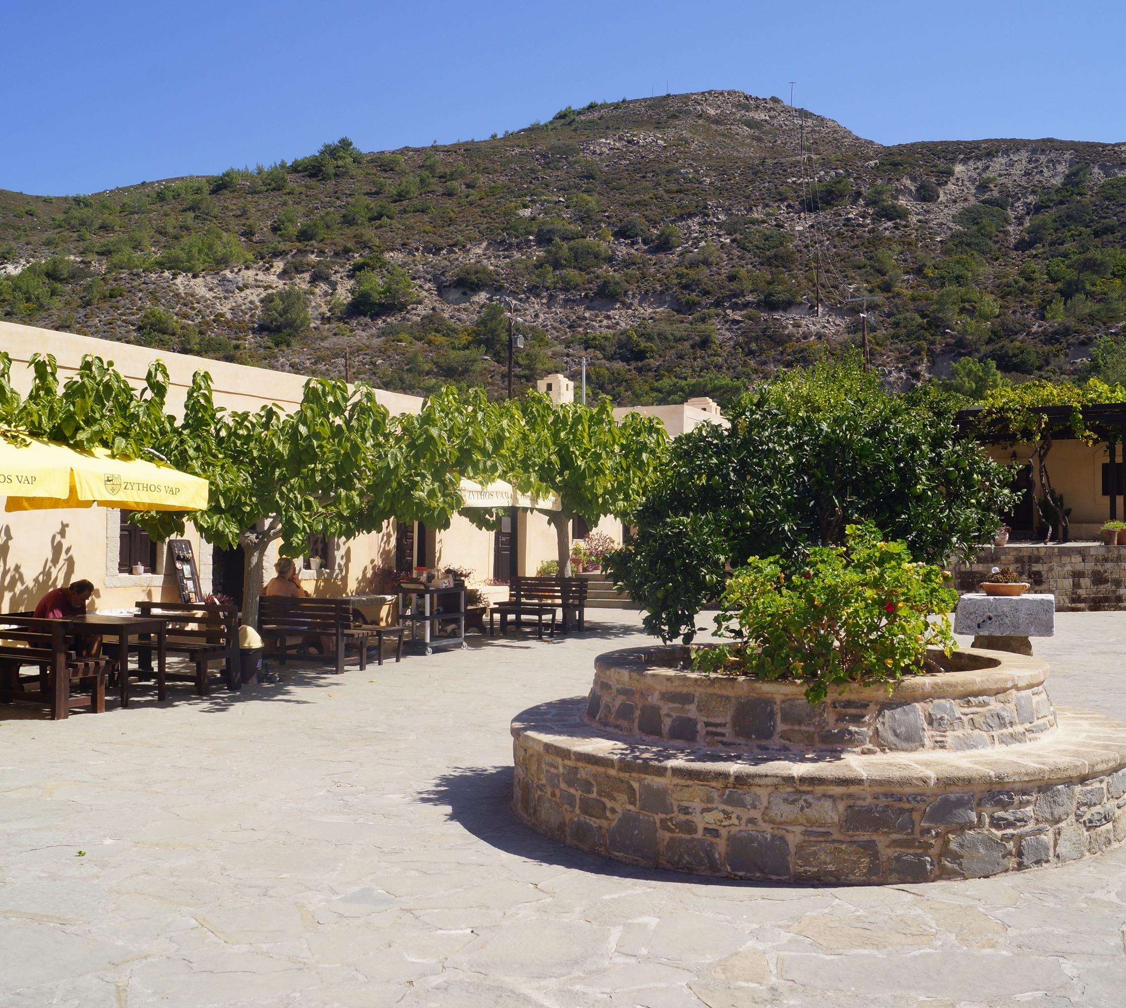 Hier kann man bei freundlichen Wirtsleuten unter Anteilnahme einiger eigentlich ständig anwesender Dorfbewohner leckere Kleinigkeiten wie griechischen Bauernsalat oder Omelett essen. Alle Zutaten kommen aus dem südlichen Rhodos, das verwendete Olivenöl stammt von eigenen Oliven des Wirts.