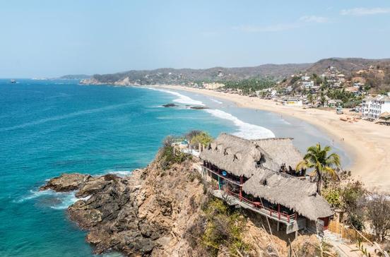 Beliebt sind die einfachen Hütten (cabañas) und Hängemattenpensionen (Gärten, in denen in Hängematten geschlafen wird) des Playa Zipolite, einem Traumstrand mit feinem weißen Sand und glasklarem Wasser.