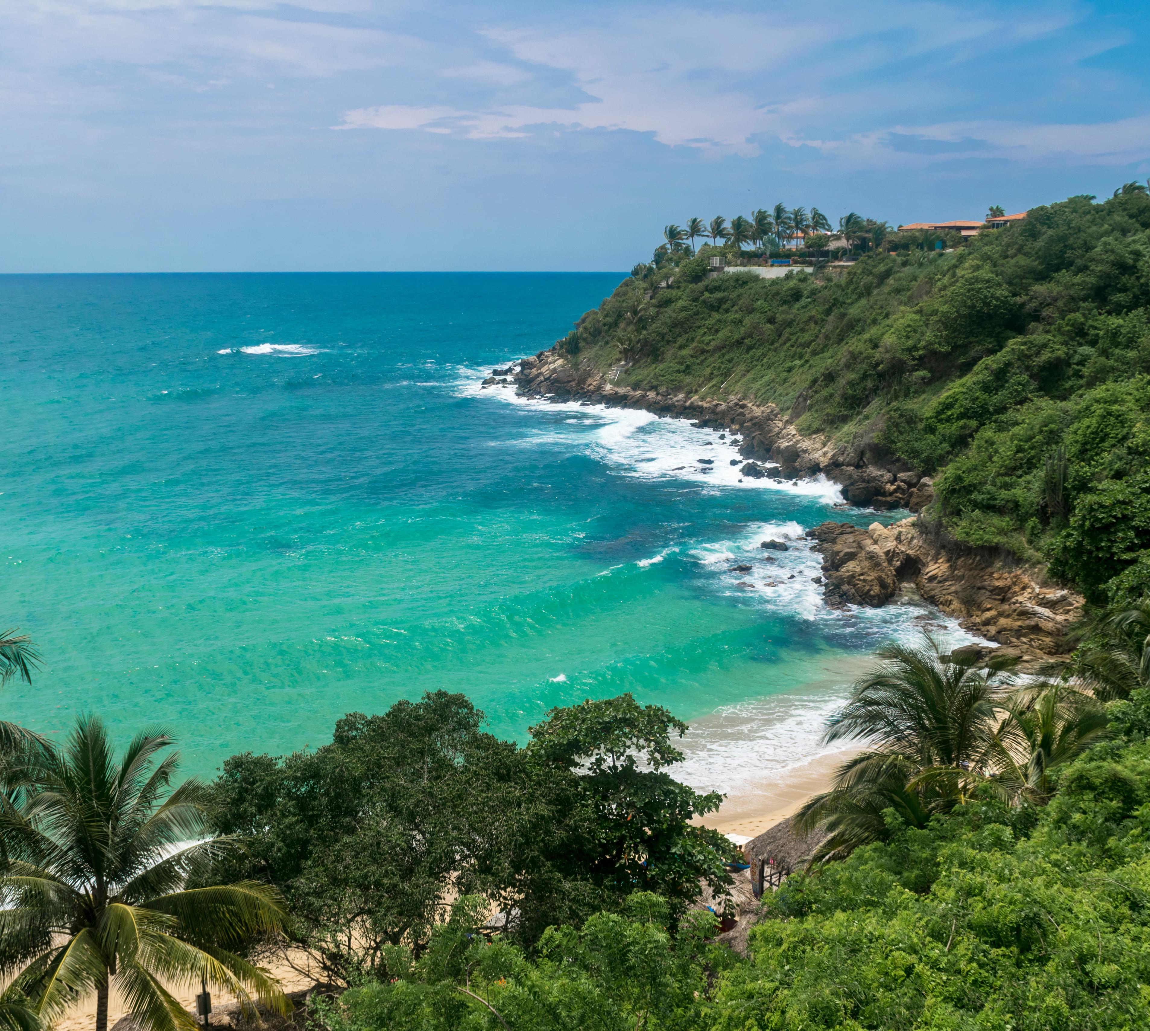 Zu den schönsten Stränden in und bei Puerto Vallarta gehört die 10 km südlich gelegene Playa Mismaloya. Hier kannst du in den Beach Bars unter Palmen am goldenen Sandstrand einen Drink schlürfen.
