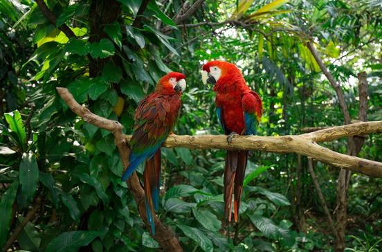 Exotische Vögel und Papageienshow in einer Gartenanlage. Attraktionen: The Hippo, eine vierstöckige Wasserrutsche, und The Jungle, in dem Alligatoren und Orang-Utans hausen.