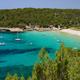 In dieser Bucht findet man ein 100 m langes Strandhalbrund mit feinem weißem Sand und anschließendem Pinienhain.