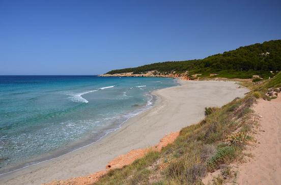 Mit knapp 3 km Länge ist dies der längste Sandstrand Menorcas. Goldgelber, feiner Sand, ein sanfter Abgang ins Meer, Duschen und Toiletten machen ihn ideal für Familien. Im 4.Jh. lag am Ostrand des Strandes vermutlich eine kleine Ortschaft (Luftaufnahmen enthüllen ein Straßenraster im Meer), von der heute nur noch die 1951 wiederentdeckten Reste einer Basilika zu sehen sind.