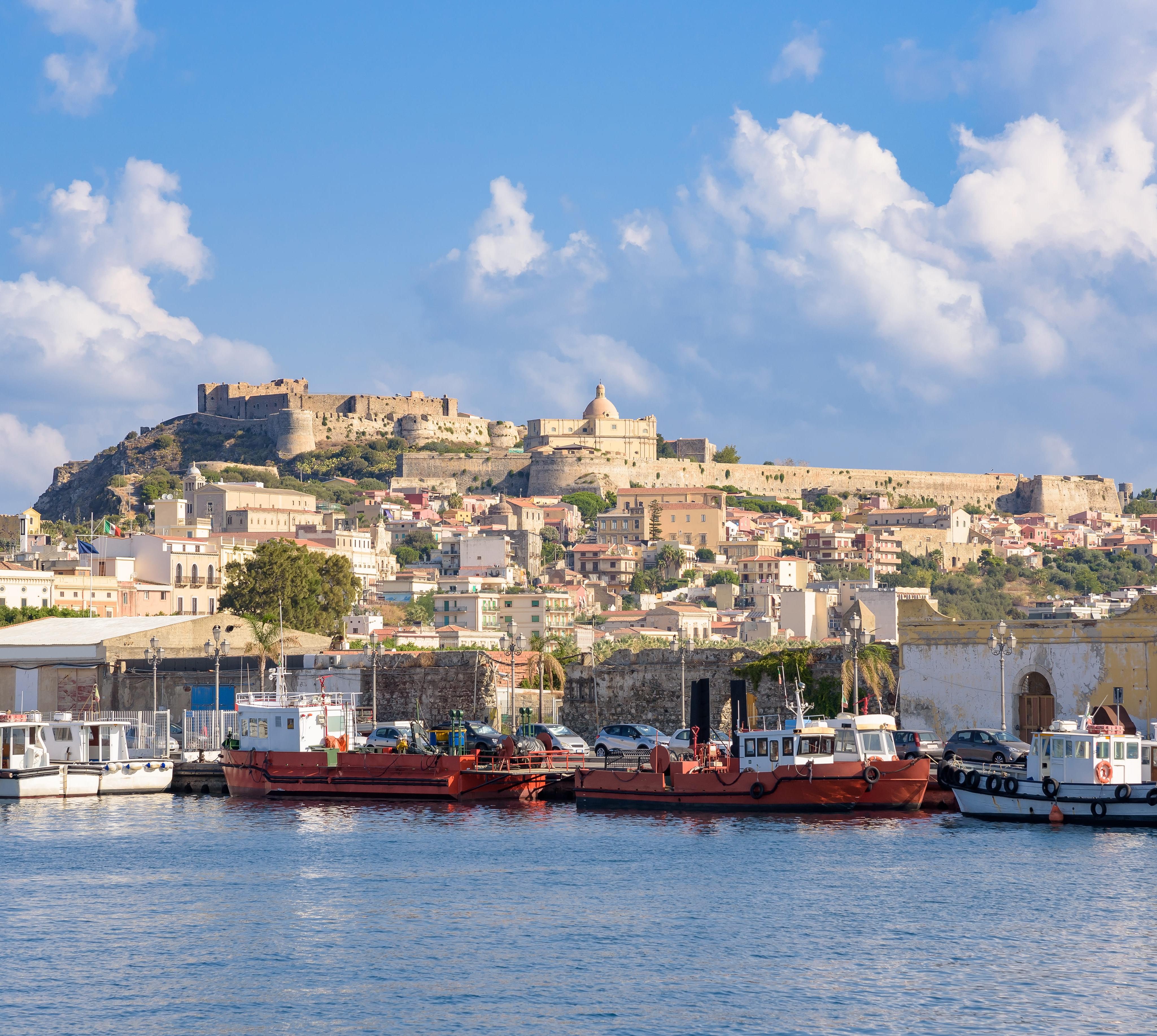 Oberhalb des Fährhafens für die Schiffe zu den Äolischen Inseln und nach Neapel liegt die reizvolle, durch einen mächtigen Mauerring aus dem 16.Jh. umschlossene Altstadt. Überragt wird sie vom Kastell Friedrichs II., das später von den Spaniern erweitert wurde. Auch sehenswert: der alte Dom (1608) und die Kirche San Papino von 1629.