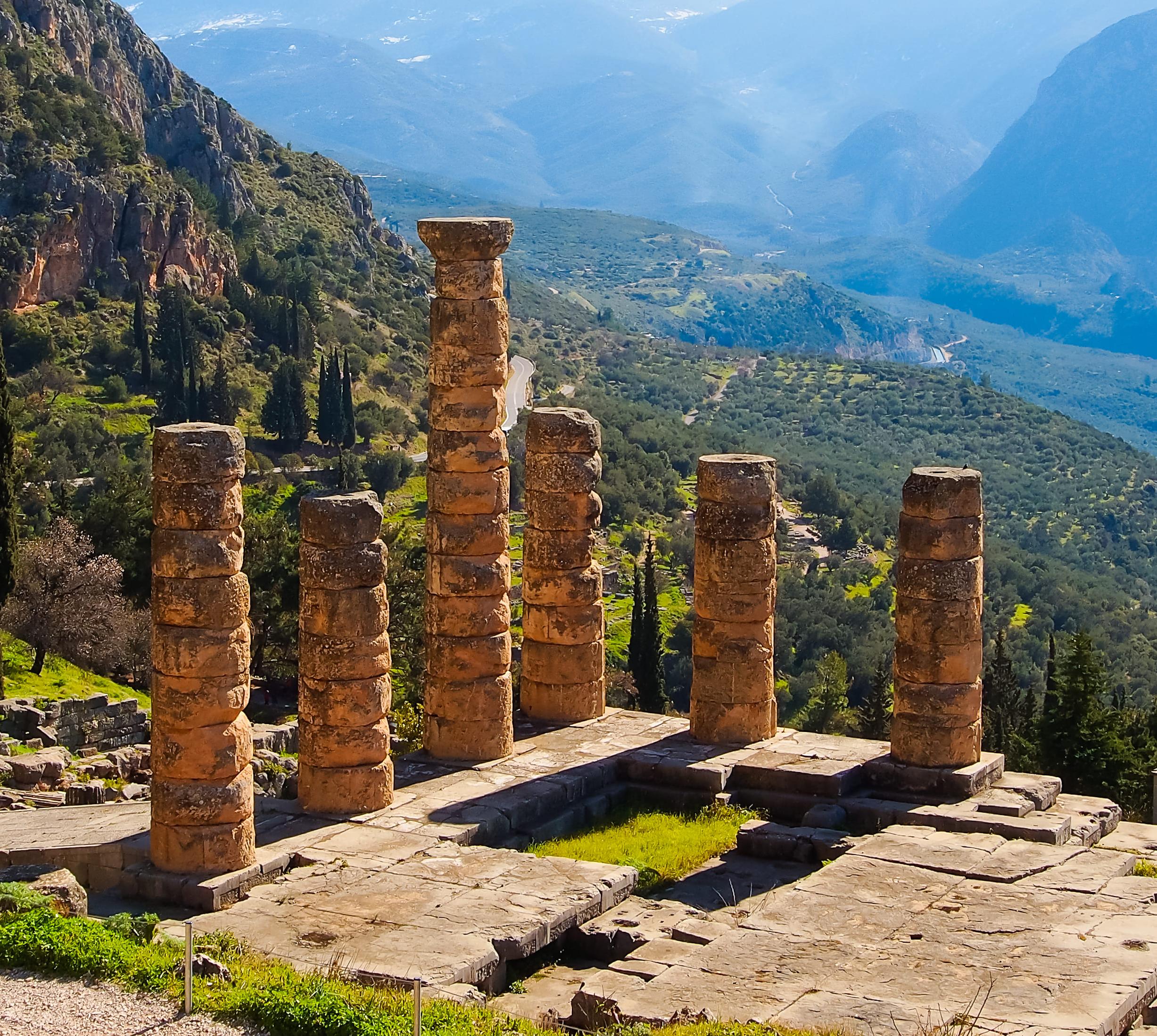 In tollster Landschaft erstreckt sich hier über einen recht steilen Hang eins der bedeutendsten Heiligtümer des Altertums. Es war Apoll, dem Gott der Schönheit und des Lichts, geweiht. Theater, Stadion und Tempel sind in schönste Landschaft zwischen dem fast 2500 m hohen Parnass- Gebirge und dem Korinthischen Golf eingebettet; das Museum von Delphi ist eins der bedeutendsten im ganzen Land. Grundlage für Ruhm und Reichtum Delphis war sein Orakel.