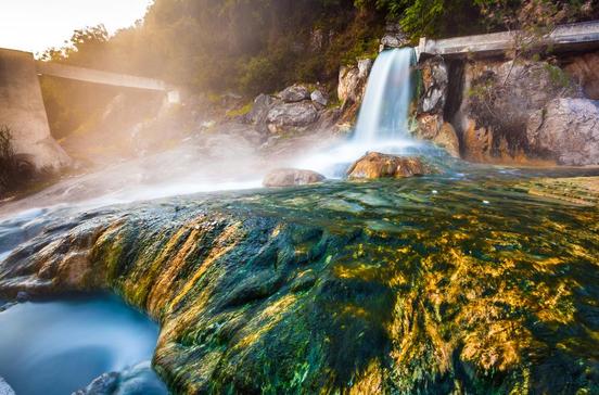 Warmes Bad gefällig? Uriger als hier geht’s kaum. Aus einem Bachlauf steigen Schwefeldämpfe auf, Felswände sind gelb verfärbt. Ein Weg führt am nicht mehr benutzten Kurhaus vorbei zu einem Teich, in dem oft japanische Badegruppen singend sitzen. Das Wasser ist wohltuend warm und gilt als heilkräftig, Umkleidekabinen oder gar Duschen gibt es nicht. „Naturnah“ kann man das Erlebnis wohl nennen. Die heißen Quellen waren hier schon aktiv, als im Jahr 480 v. Chr. die Perser über diese Landenge gen Athen marschieren wollten. Doch es wartete der Feldherr Leonidas mit 300 Spartanern auf die gewaltige Übermacht. Verrat führte zur völligen Vernichtung der kleinen Truppe. Mit ihrem aussichtslosen Kampf hatten sie jedoch Athen Zeit verschafft, sich gegen die Perser zu wappnen. Ein gewisser Simonides dichtete später das von Friedrich Schiller ins Deutsche übersetzte Epigramm „Wanderer, kommst du nach Sparta, verkündige dorten, du habest uns hier liegen gesehen, wie das Gesetz es befahl.“ Heute erinnert ein Denkmal an der Nationalstraße an die antike Schlacht.