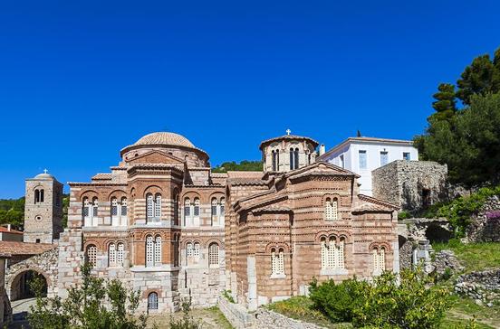 Lust auf 1000 Jahre alte Mosaike? Die sieht man in großer Zahl in der Hauptkirche des schon im 10.Jh. gegründeten Klosters, das völlig einsam in grüner Hügellandschaft liegt. Kunsthistoriker rechnen diese Mosaike zu den Meisterwerken der Weltkunst. Auf dem Weg zum Kloster kommst du am Dorf Dístomo (2500 Ew.) vorbei, über dem ein weithin sichtbares Mausoleum steht. Es erinnert an die Ermordung von 223 Männern, Frauen und Kindern durch deutsche Soldaten im Jahr 1944.